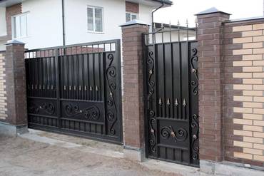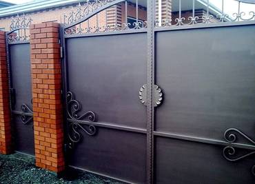 В комплектацию входит рама с двумя полотнами, задвижка, ручка для калитки. Купить распашные металлические ворота можно по цене от 12000 руб.